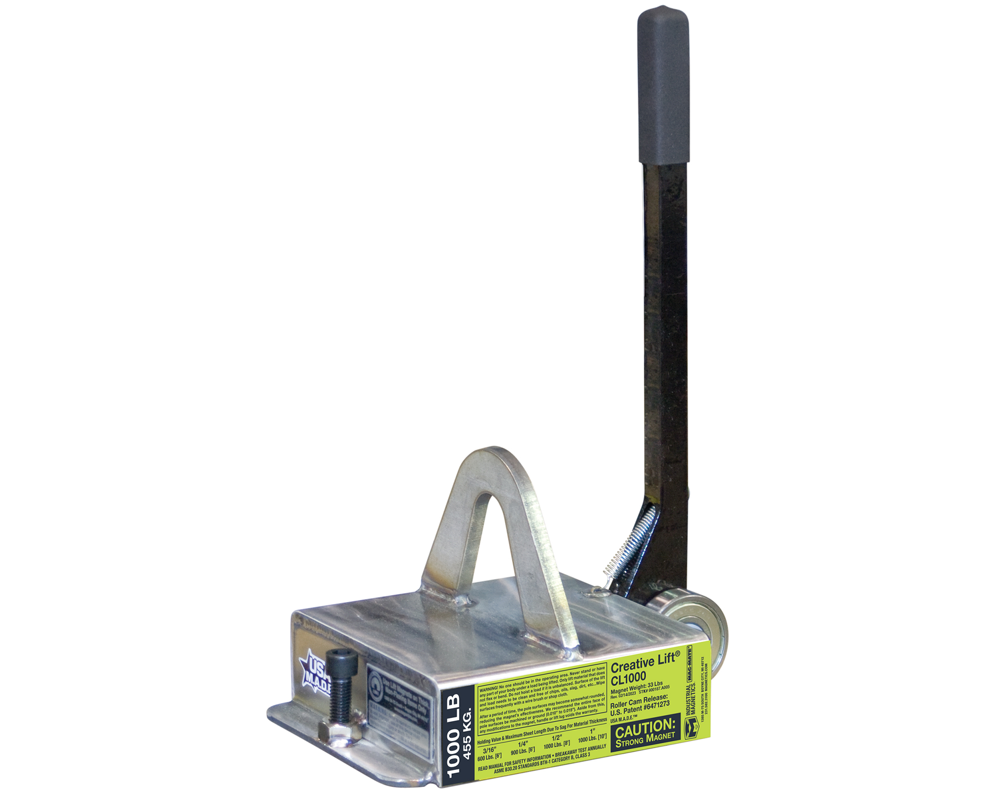 The Creative Lift Magnet provides secure lifting for thick steel sheets, featuring a non-marring release and spring-return handle for safety. It's built to handle high-capacity lifts and protect materials from damage.