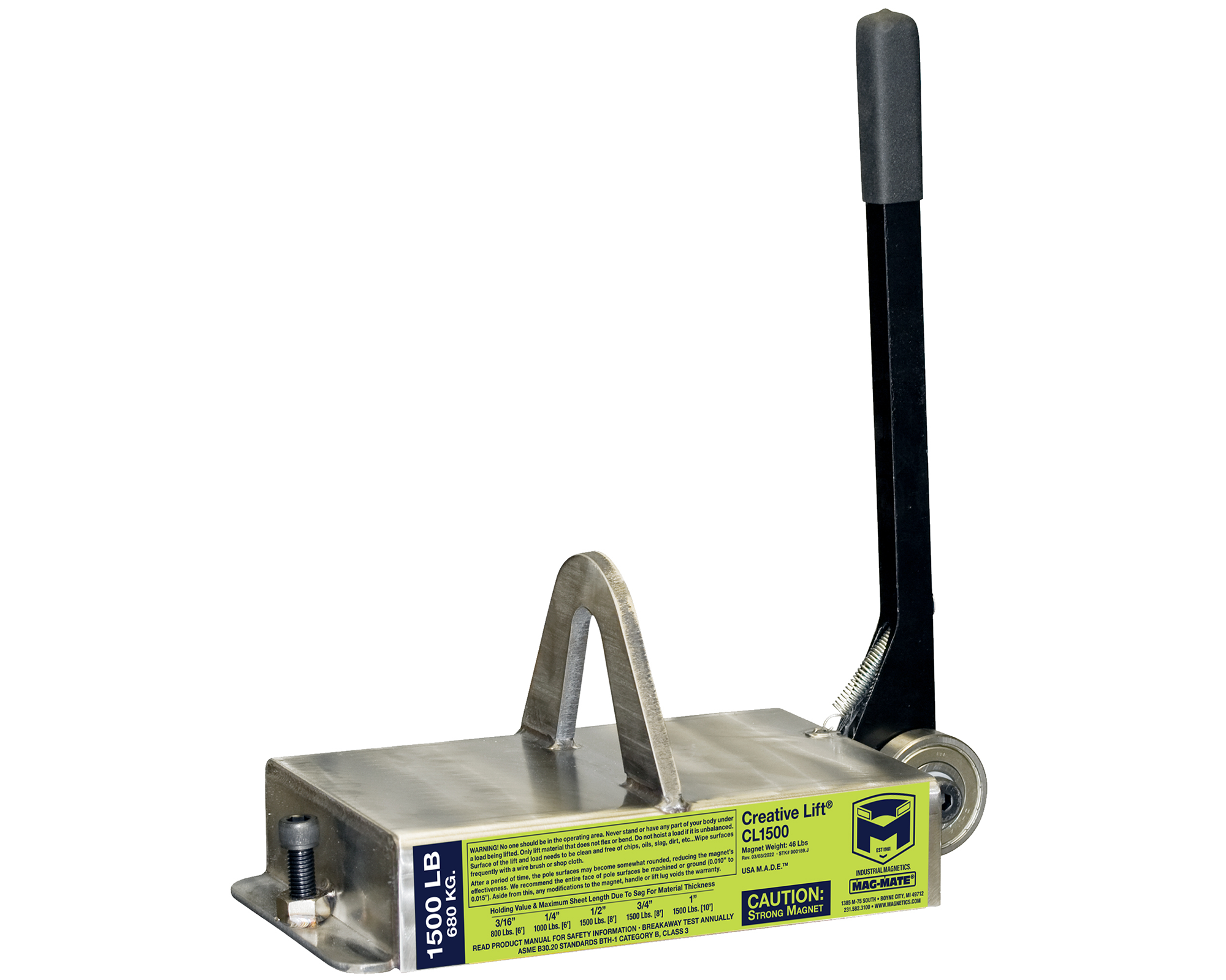 Mag-Mate Creative Lift CL1500 Permanent Lifting Magnet, 1,500 lb Capacity, Manual On/Off Control