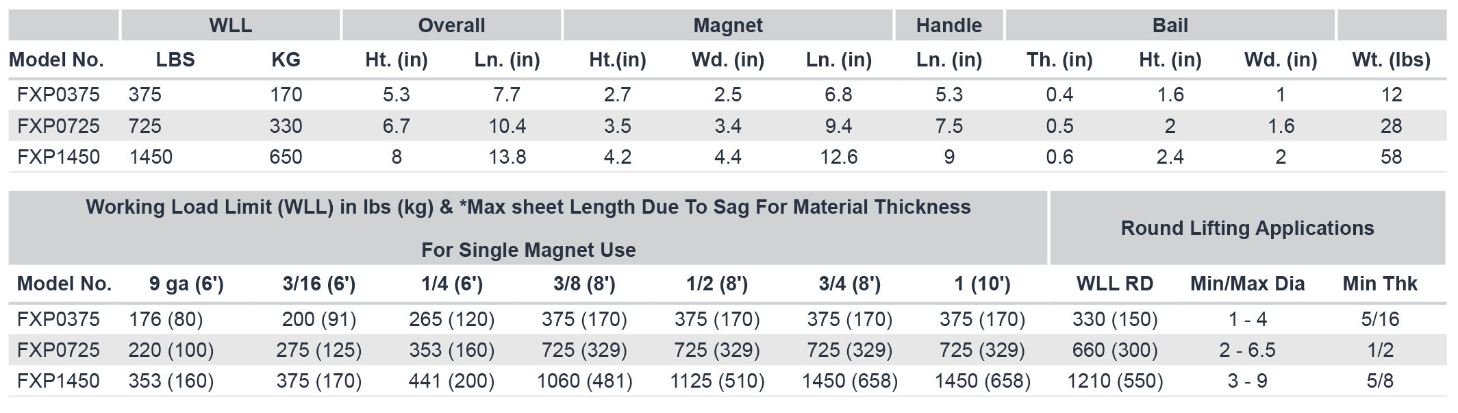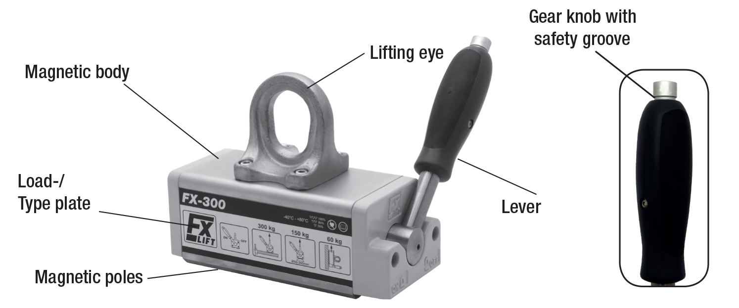 Mag-Mate FXP0725 Thin Sheet & Pipe Permanent Lifting Magnet, 725 lb Capacity, Manual On/Off Control