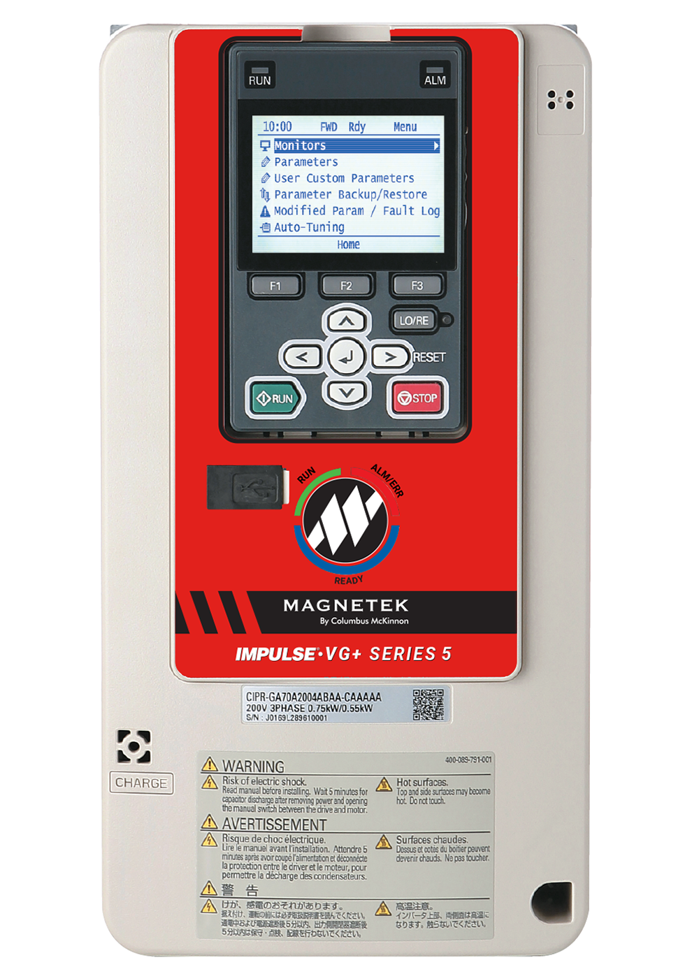 Magnetek IMPULSE VG+ Series 5 VFD, 7.2FLA, 4HP, 460VAC, 4007-VG+S5