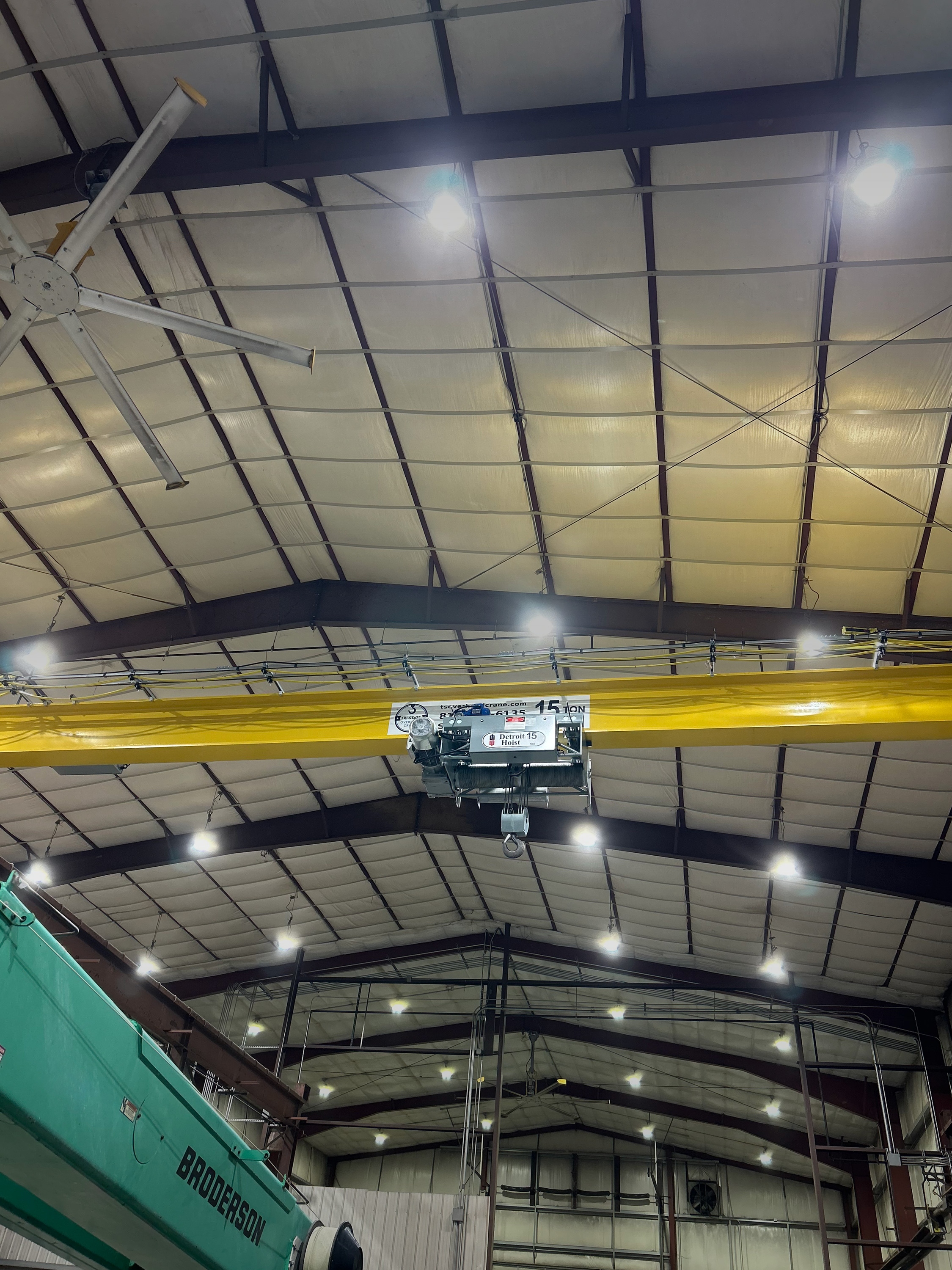 - To maximize headroom two Detroit Low Headroom Wire Rope Hoists were used.