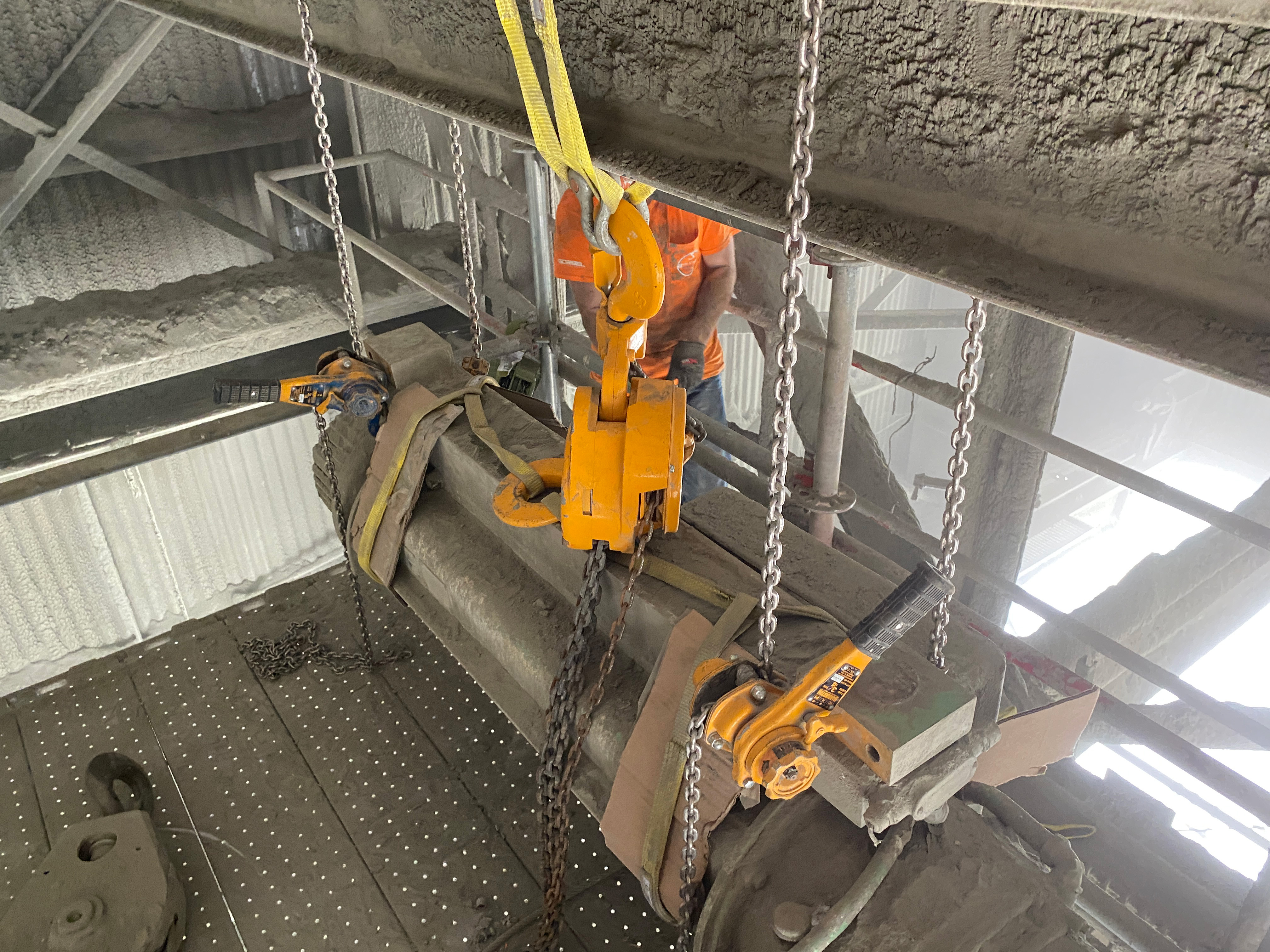 Problem: Customer called with a locked-up hand-geared chain trolley that was locked up from years of concrete dust.