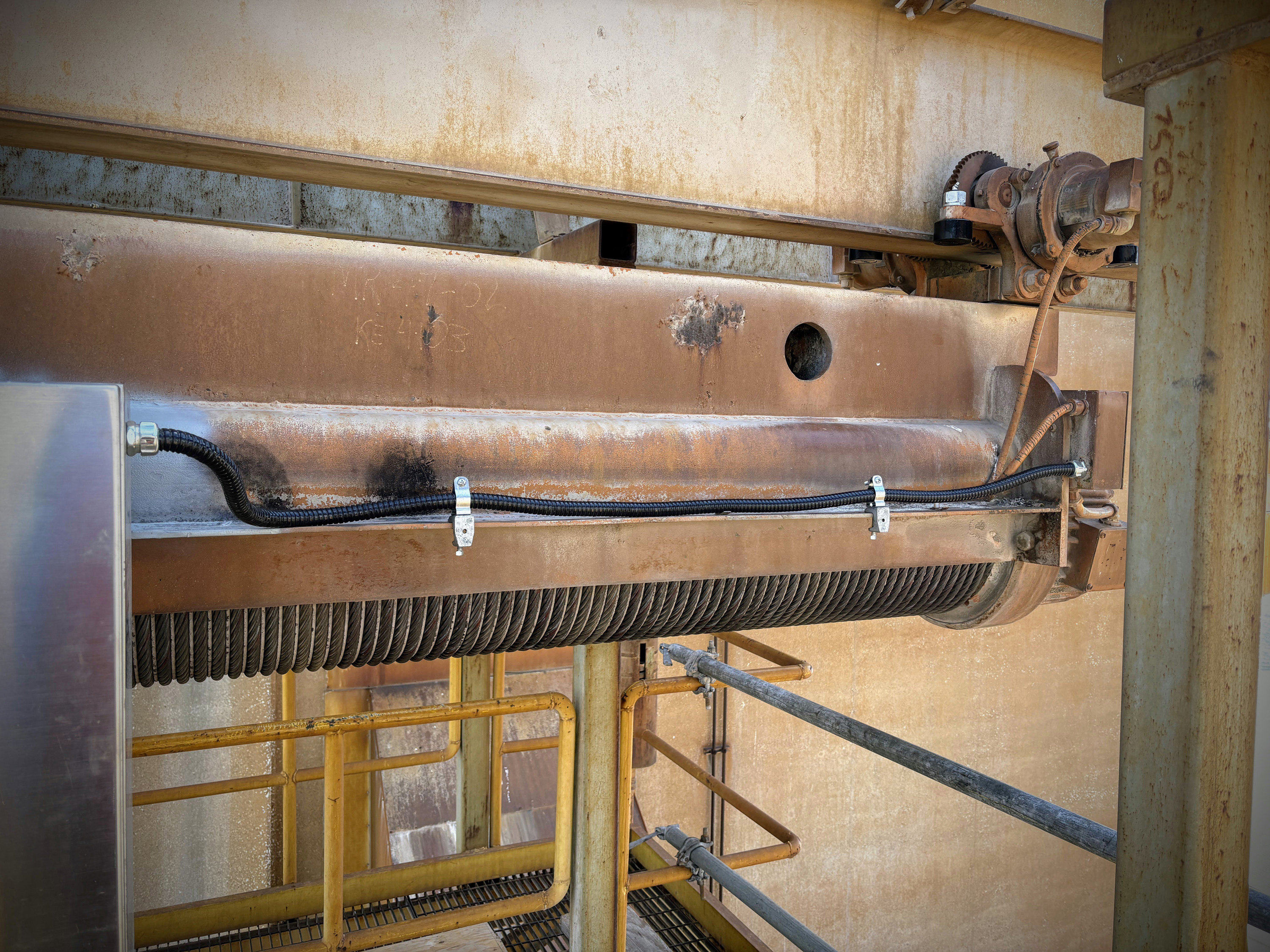 Our service technicians were on-site at a cement facility in Iowa for a scheduled wire rope replacement when they uncovered severe corrosion damage on a 7.4-Ton P&H Hevi-Lift hoist. The hoist operates on a monorail system within a harsh industrial environment, and its structural degradation was so significant that it was unsafe to proceed. The job was immediately upgraded to an emergency service call, and the hoist was removed from service.