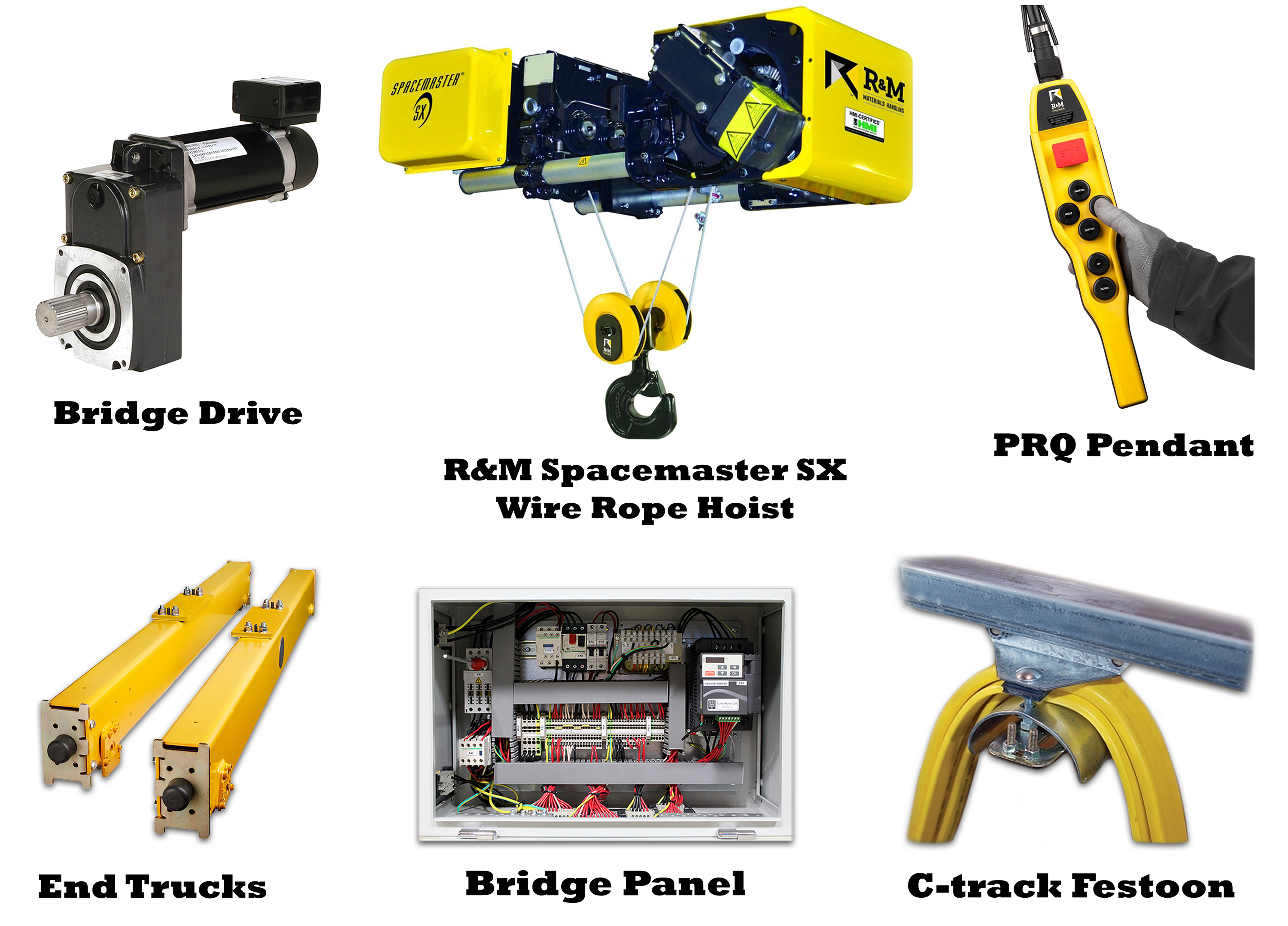 The QX Overhead Crane Kit is a complete crane system from R&M Materials Handling. It features their top-rated Spacemaster SX wire rope hoist and is designed to work as a complete system, with all components optimized together for your specific needs.