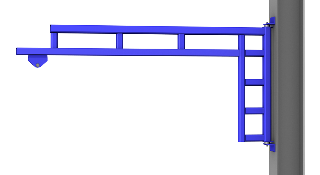 • Boom assembly is designed to be mounted to a wall or column and comes with pivots at the top and bottom.