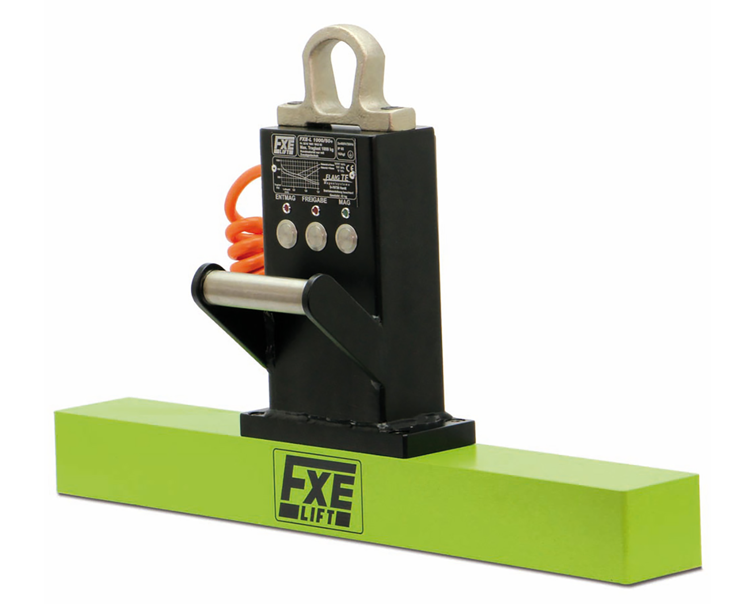 The FXE 50L Series magnet is ideal for lifting long, narrow parts such as I-beams and C-channels. Its design allows for secure handling and easy orientation adjustments.