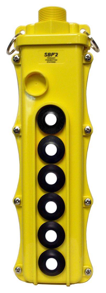 - Housings of the SBP2 pendant pushbutton station are made from polycarbonate, an impact resistant polymer material. This material has proven durable in most industrial environments. Like all plastics, it is susceptible to some chemicals. In particular, some machine shop cutting fluids and wire drawing lubricants can lead to cracks in the housings. Polyamide (nylon) housings are available as an option for these applications.