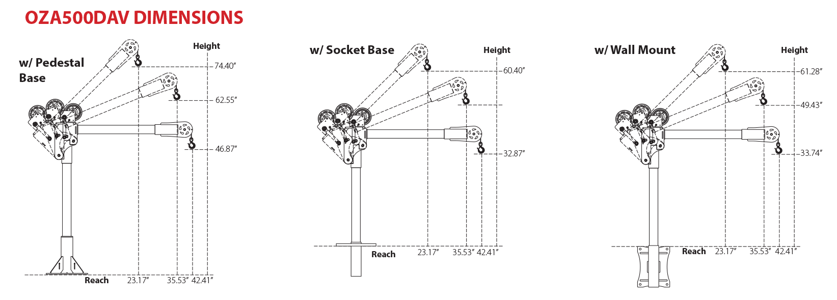 OZ Alumi-Lite Davit Crane, 500 lb. Capacity, 12V DC Electric Winch, Part No OZA500DAV-DCW