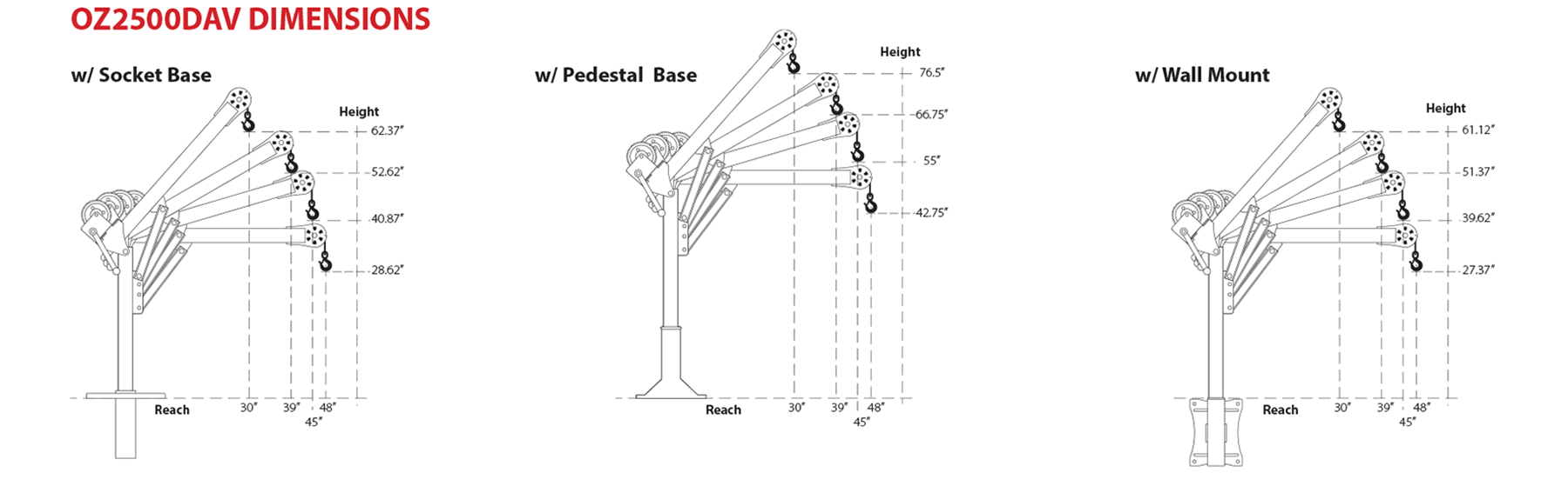 OZ Steel Davit Crane, 2,500 lb. Capacity, Carbon-Steel Brake Winch, Part No OZ2500DAV