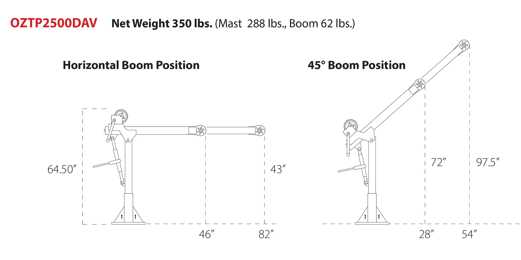 OZ Tele-Pro Davit Crane, 2,500 lb. Capacity, Carbon-Steel Brake Winch, Part No OZTP2500DAV