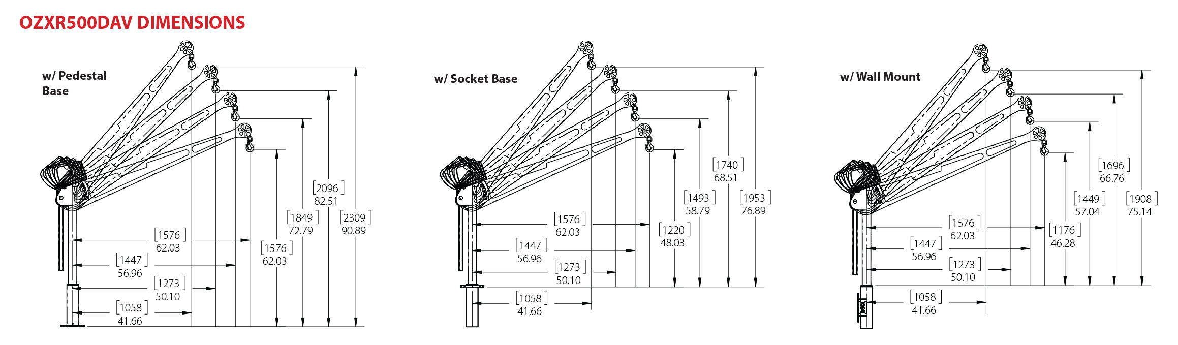 OZ XR Series Steel Davit Crane, 500 lb. Capacity, Carbon-Steel Brake Winch, Part No OZXR500DAV