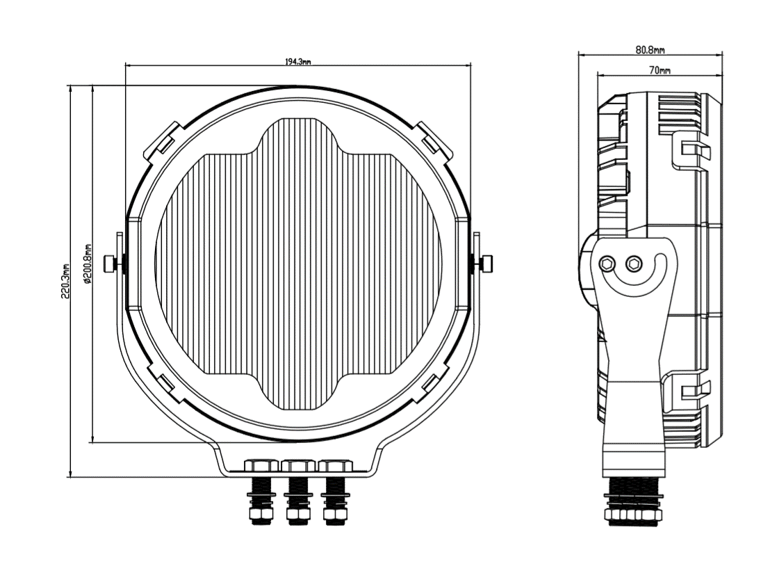 Lens can be changed to switch between a horizontal beam or a spot beam.